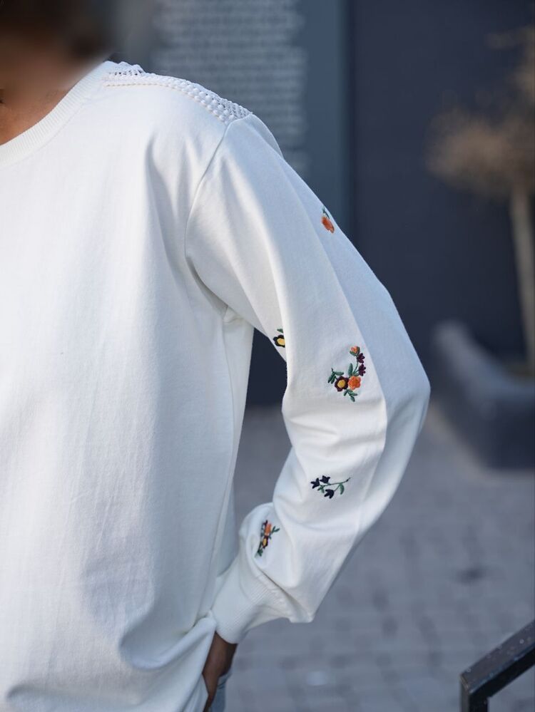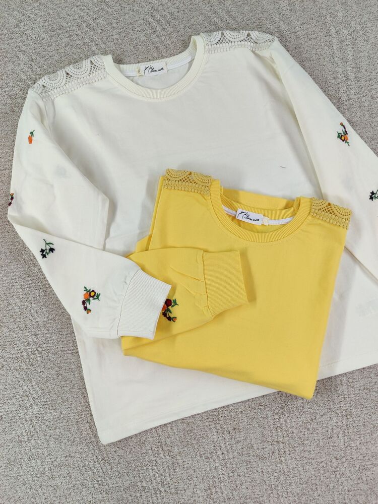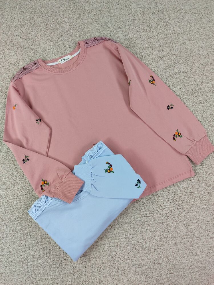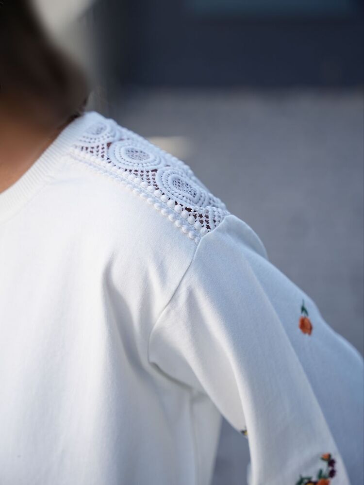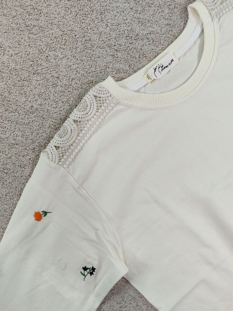 بلوز آستین گلدوزی و سرشانه توری