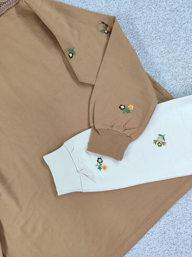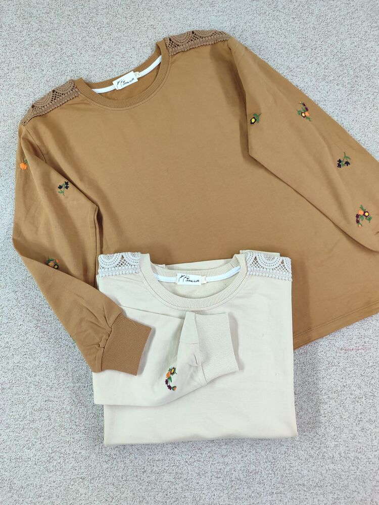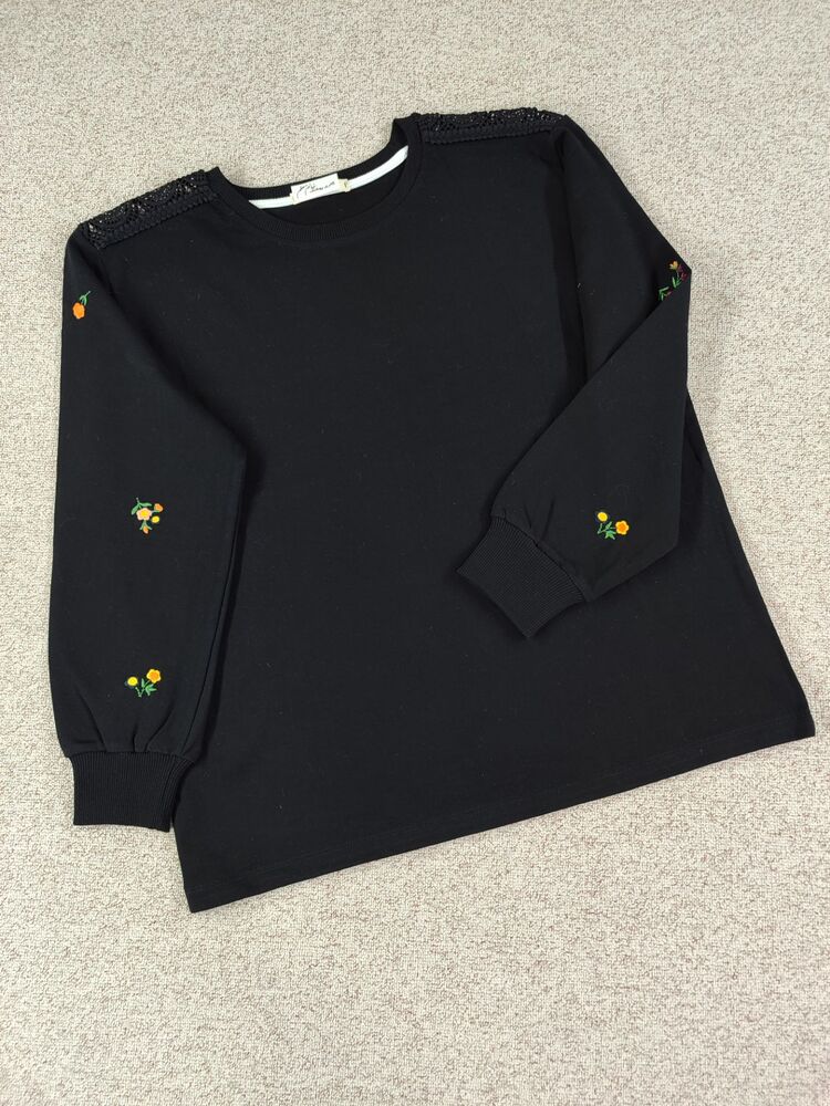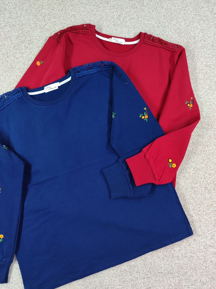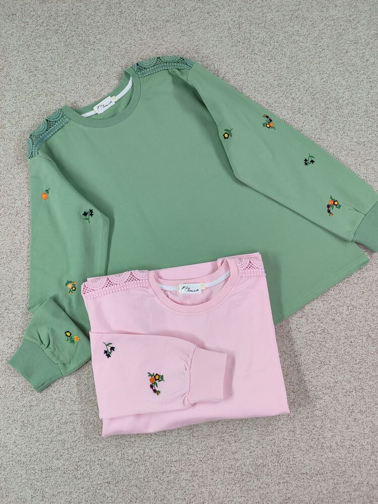 بلوز آستین گلدوزی و سرشانه توری