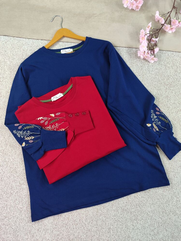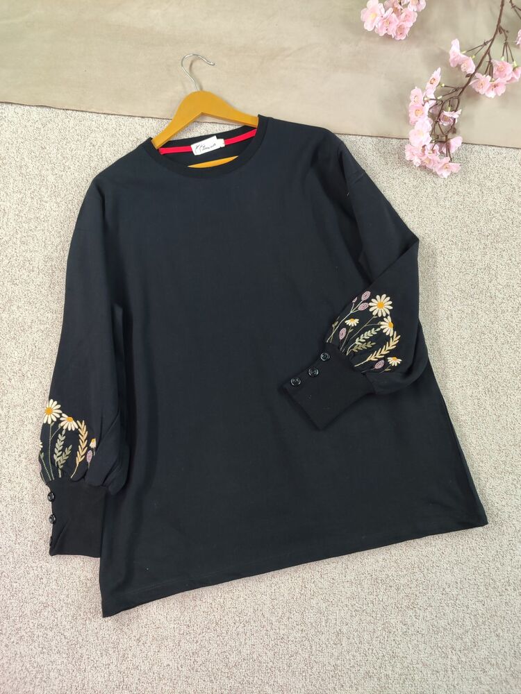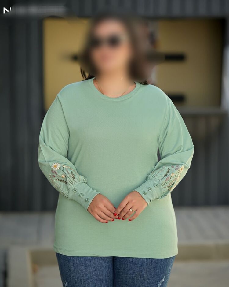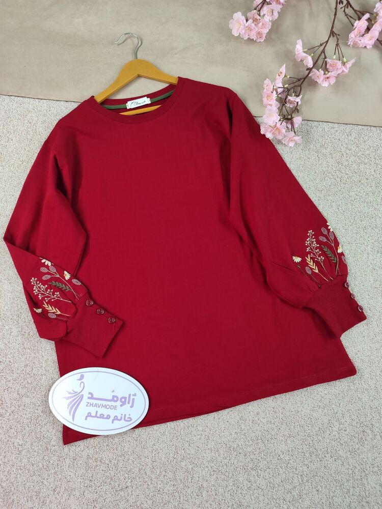 بلوز قواره بزرگ زنانه سر آستین گلدوزی عشوه