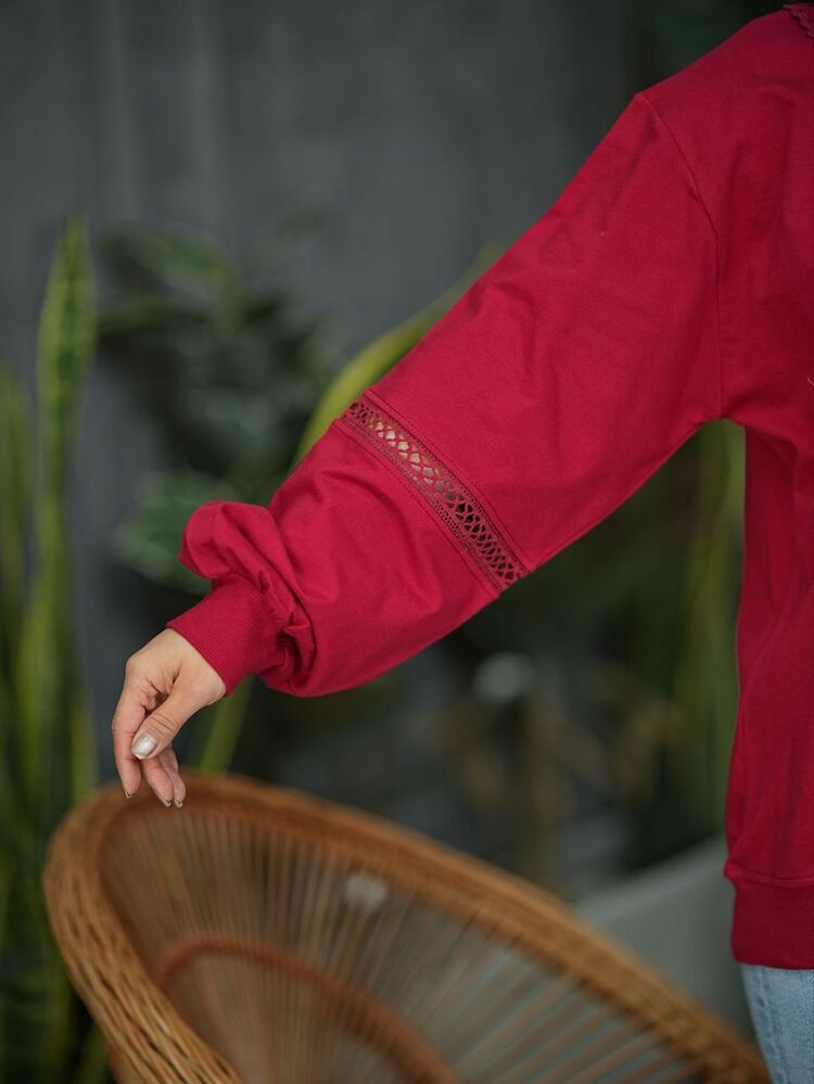 خانه زنانه بلوز بلوز پاییزه یقه بِ بِ و آستین تور سایز بزرگ