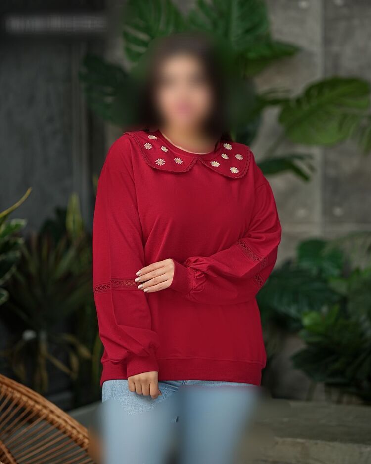 بلوز پاییزه یقه بِ بِ و آستین تور سایز بزرگ