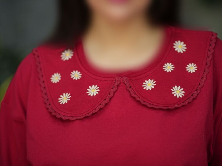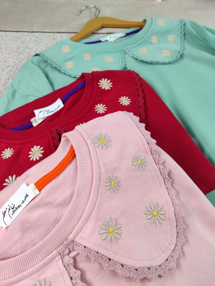 بلوز پنبه آستین سه دکمه گلدوزی پاییزه