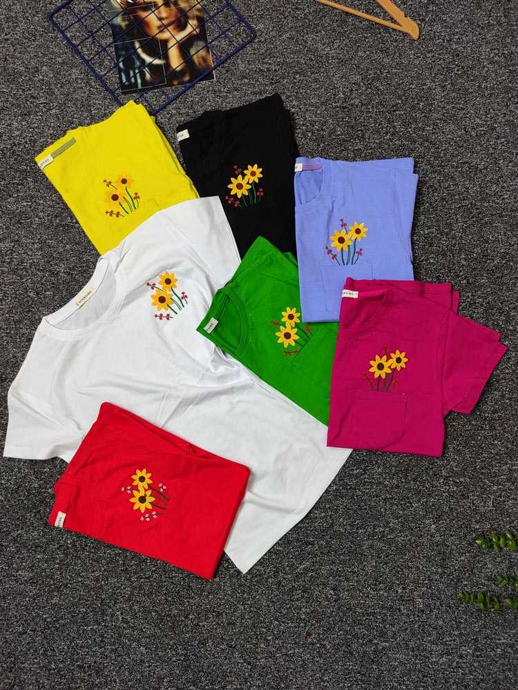 تیشرت جیب گلدوزی آفتاب گردان