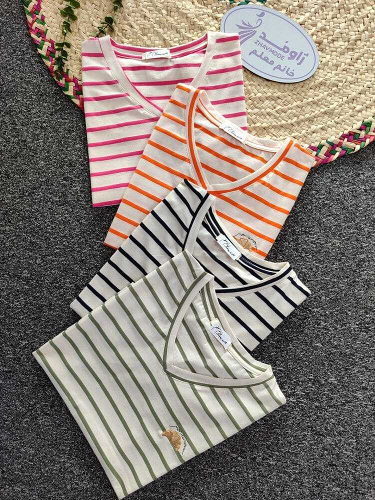 خانه زنانه تیشرت تیشرت راه راه یقه هفت پریسا