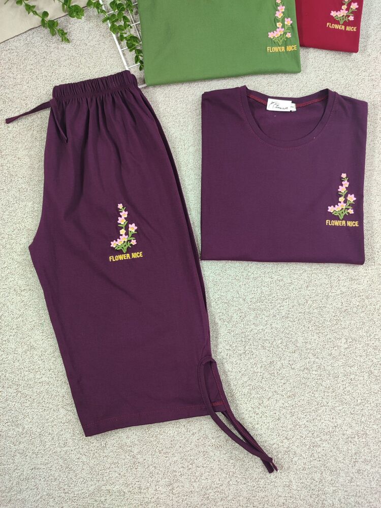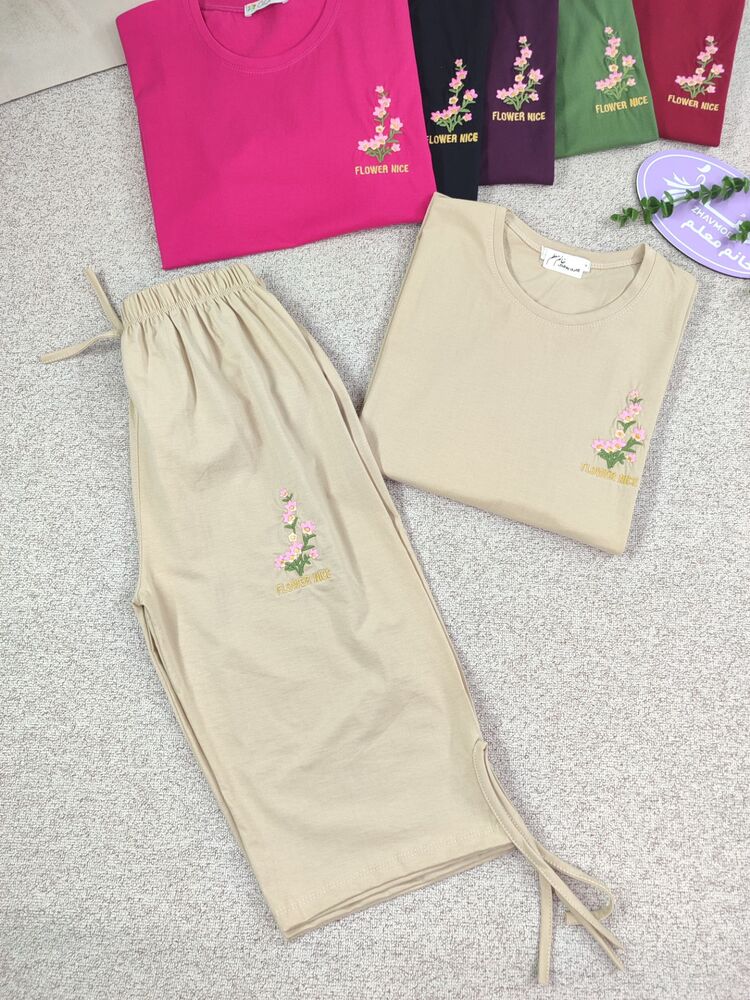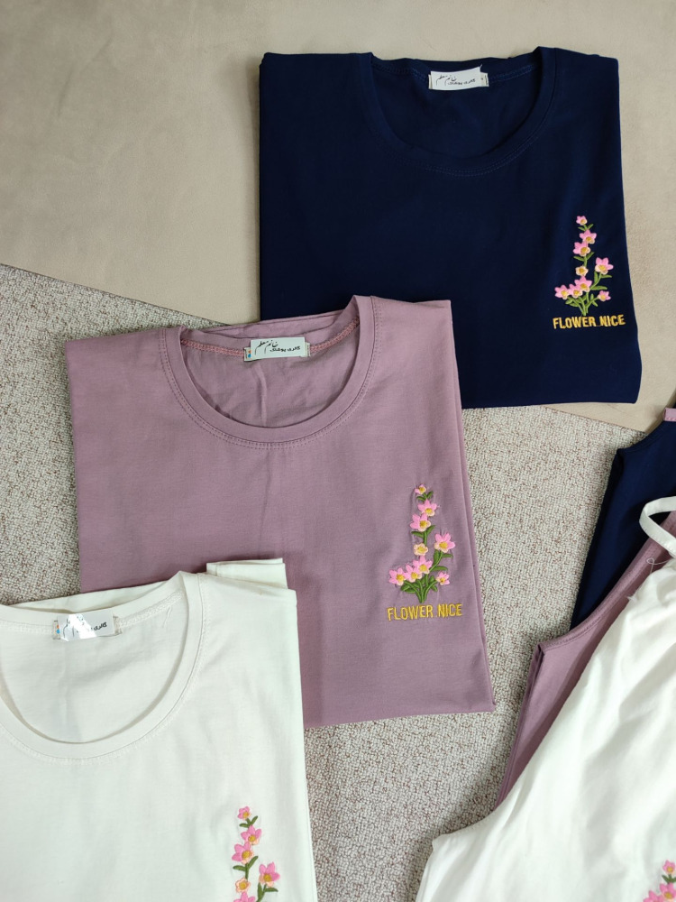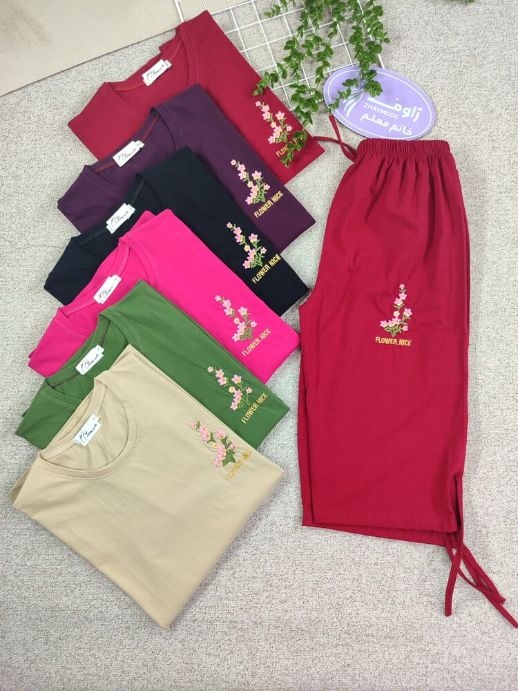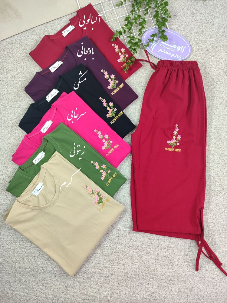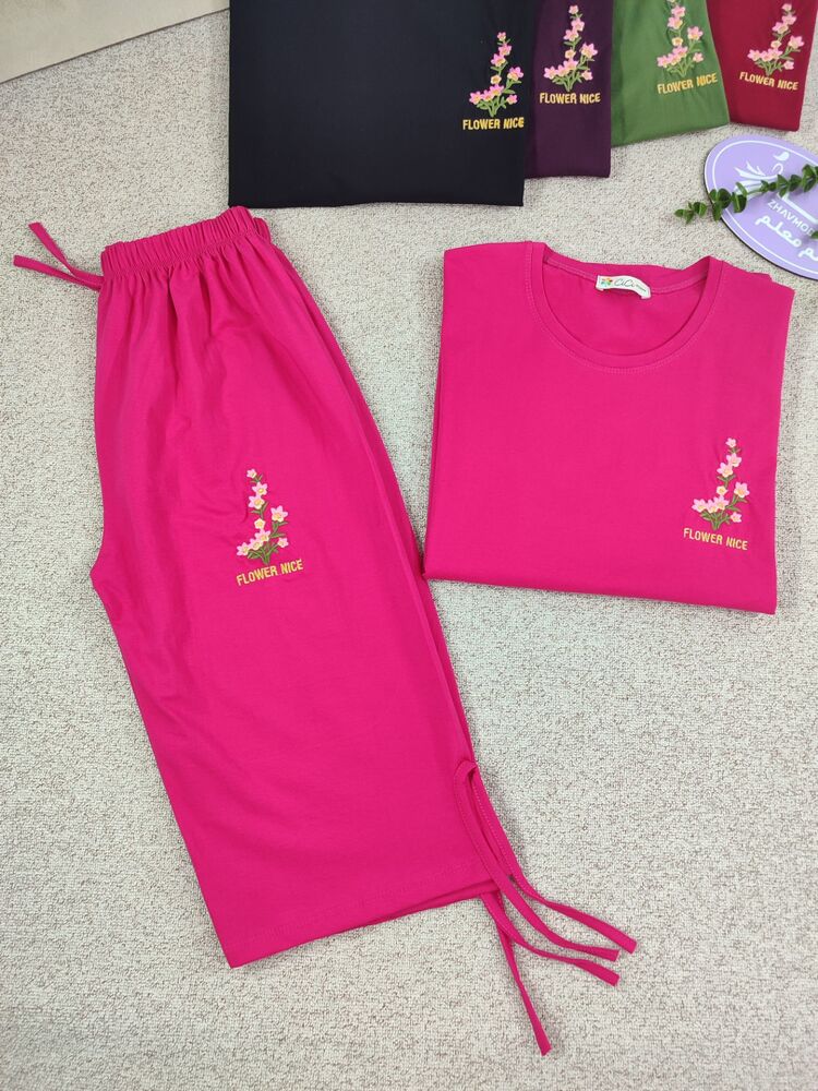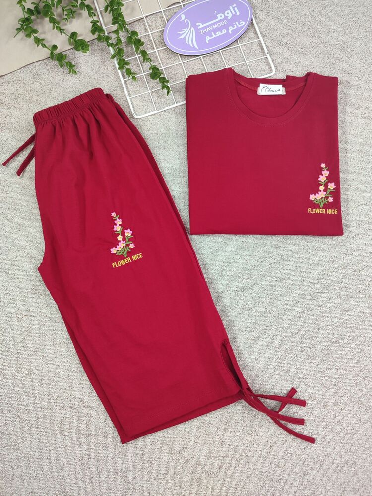 خانه زنانه ست تیشرت شلوارک ست تیشرت گلدوزی شده پریا