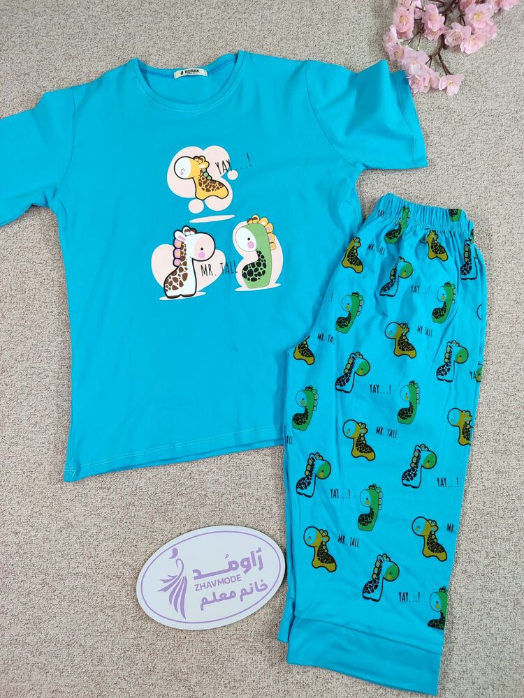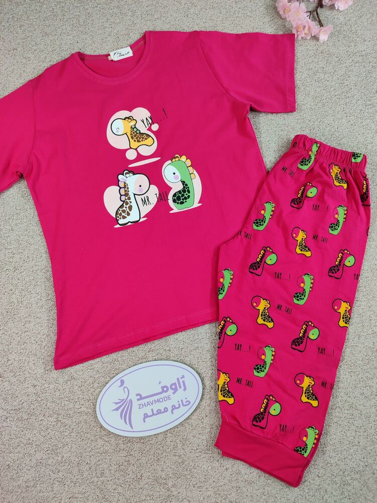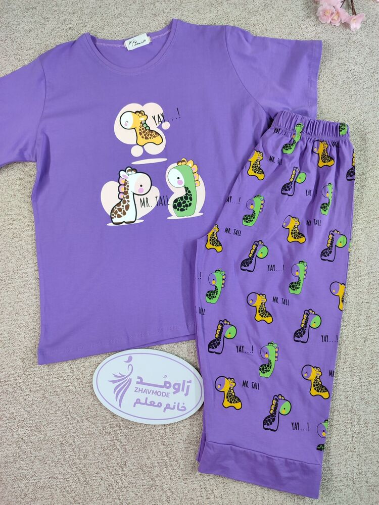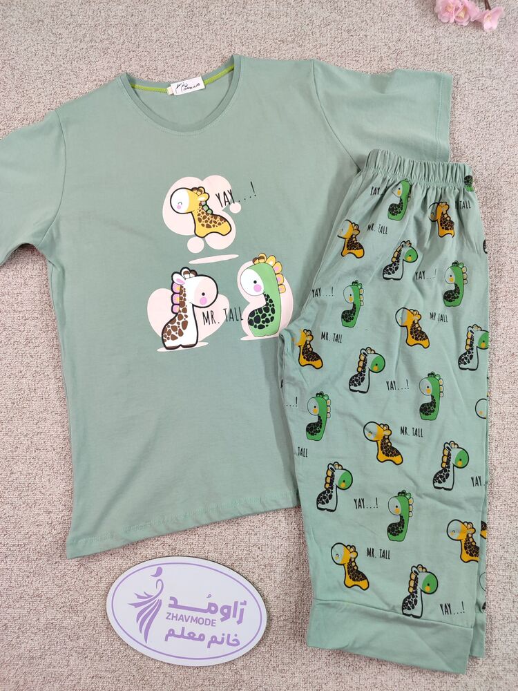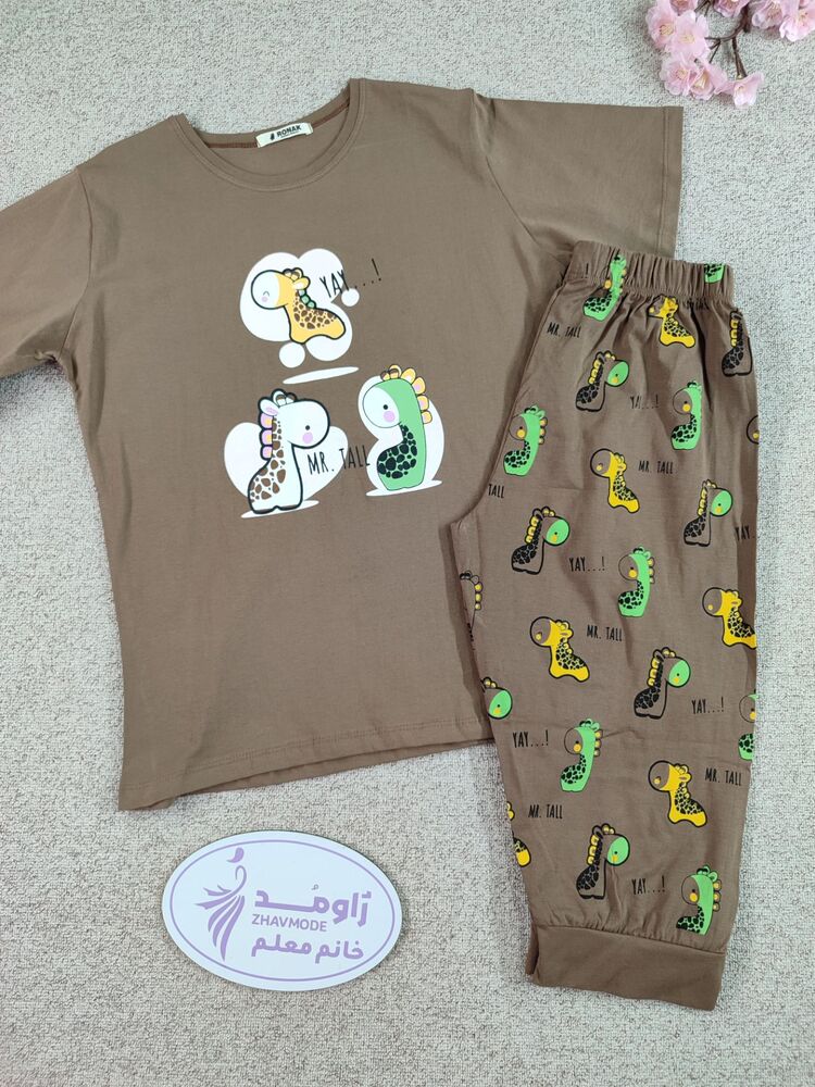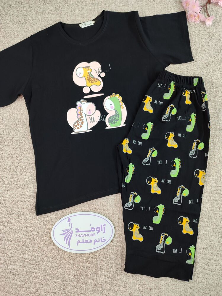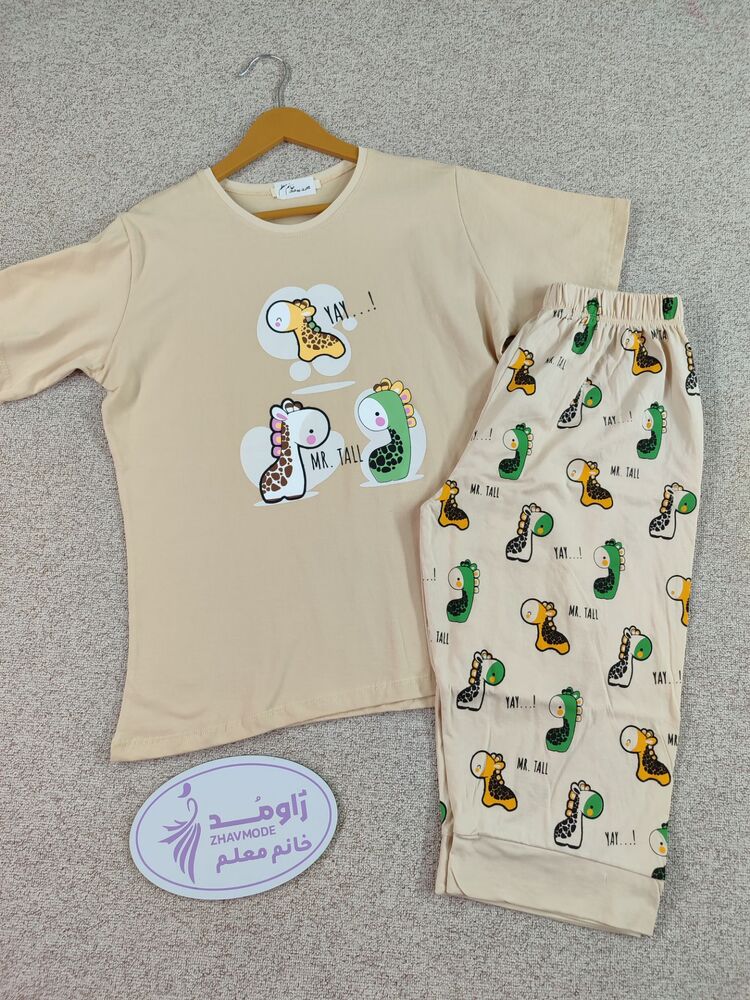 - ست راحتی زنانه تیشرت و شلوارک طرح بچه دایناسور بسیار راحت و جذابه که یه استایل خونگی خاصی رو بهتون هدیه میده.