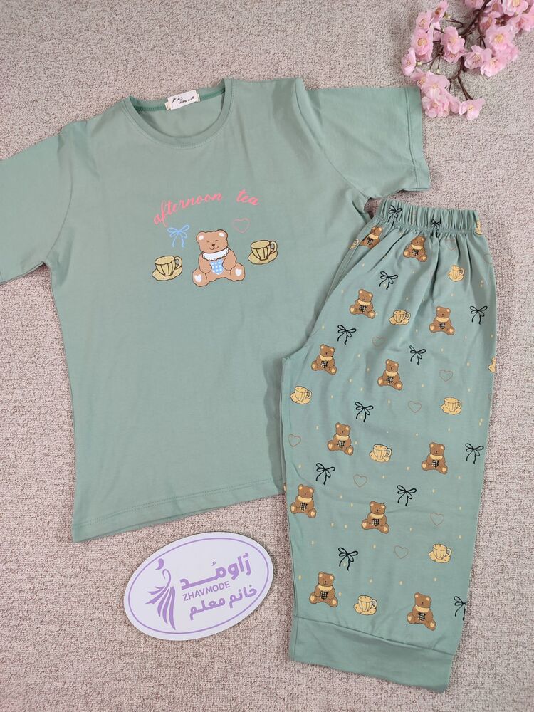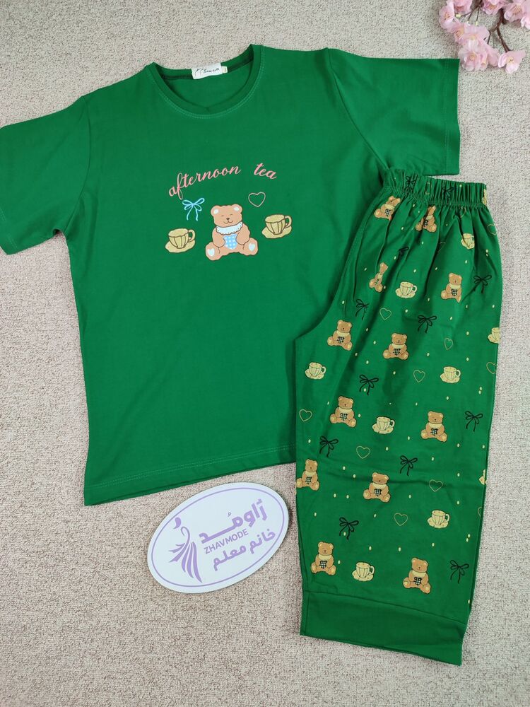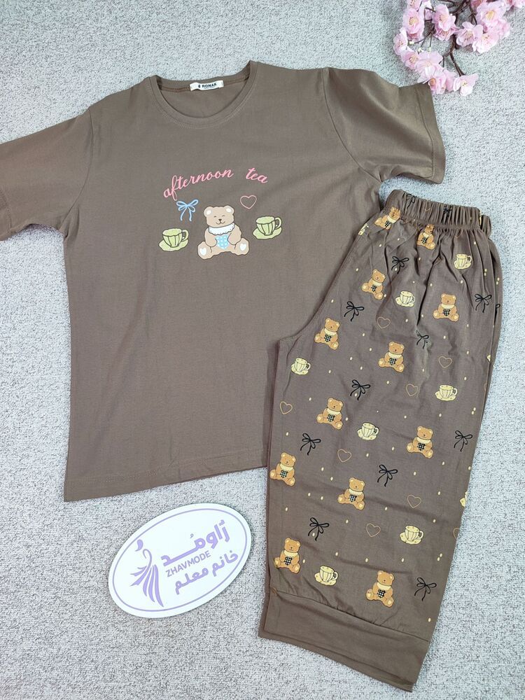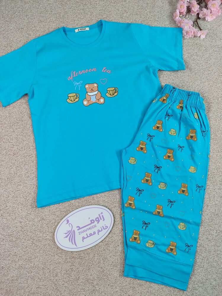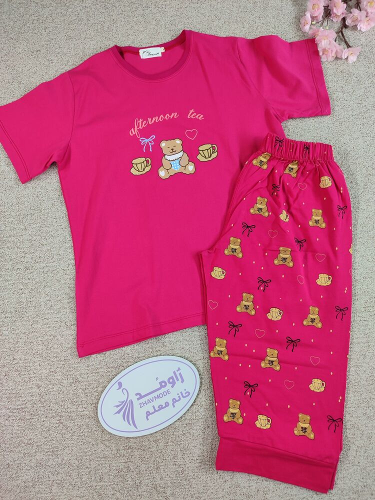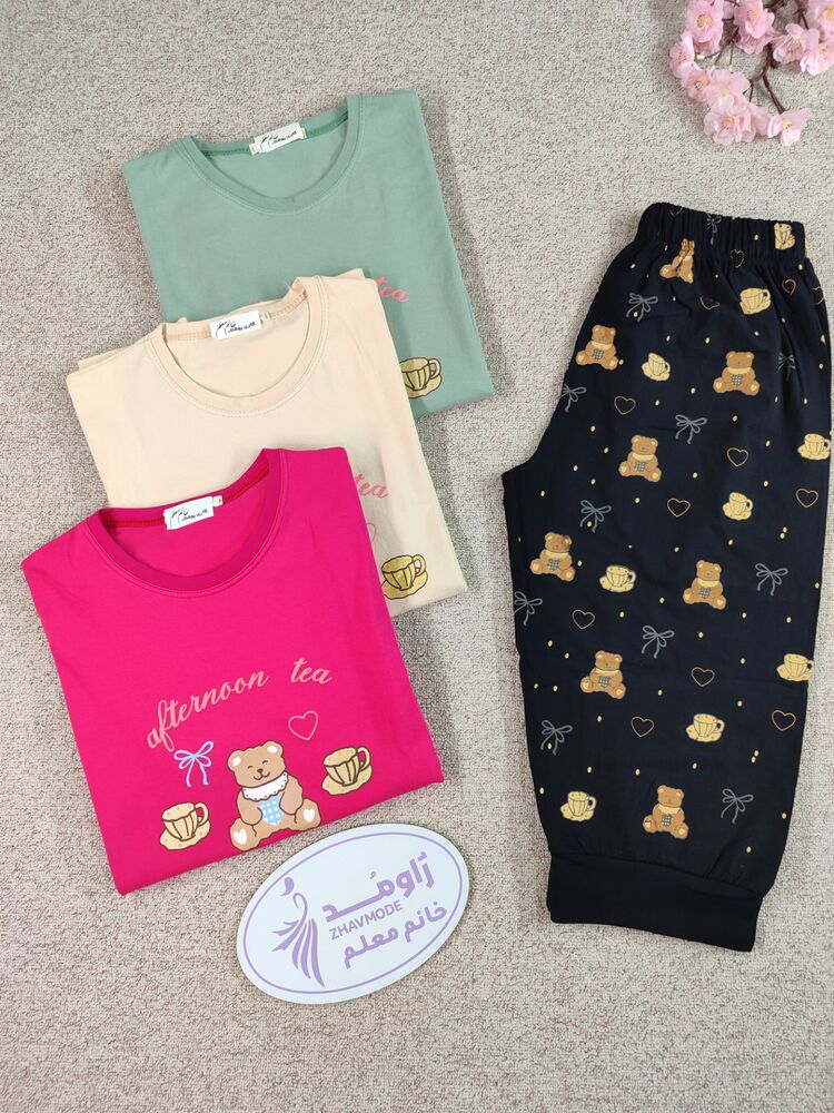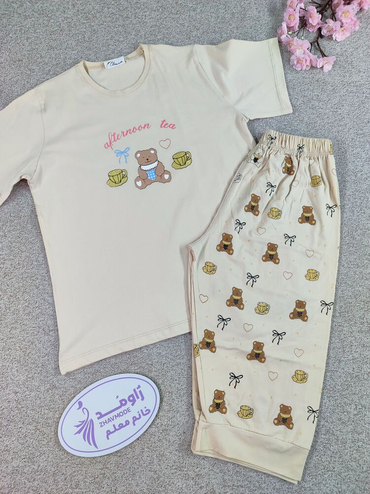 - ست راحتی زنانه تیشرت و شلوارک طرح خرسی بسیار راحت و جذابه که یه استایل خونگی خاصی رو بهتون هدیه میده.