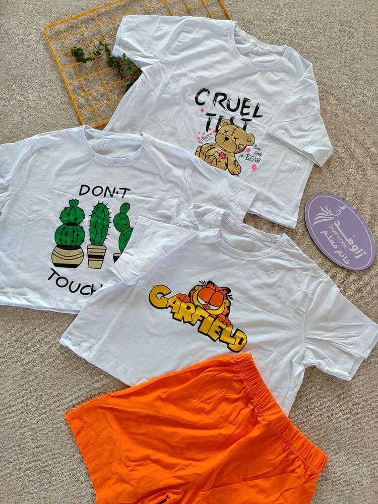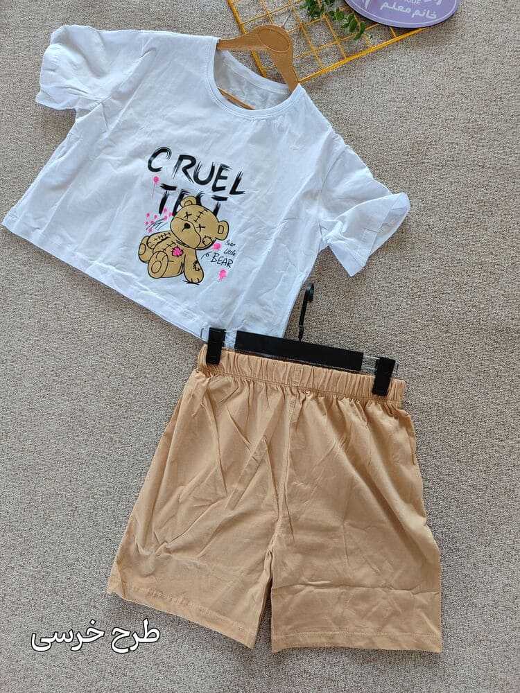 خانه زنانه ست تیشرت شلوارک ست کراپ شورتک فانتزی